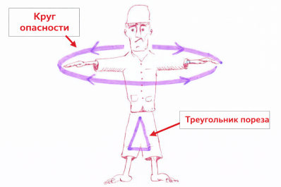 - Всегда режьте в направлении от тела, помня о «треугольнике пореза».