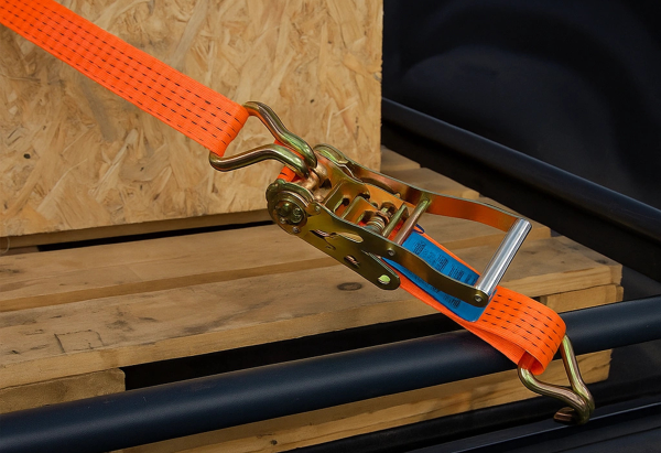 Upewnij się, że ładunek jest równomiernie rozłożony, pas ma odpowiednią długość, a ładunek jest stabilny, bezpiecznie zamocowany i po poluzowaniu pasa nie spadnie z nośnika (palety).